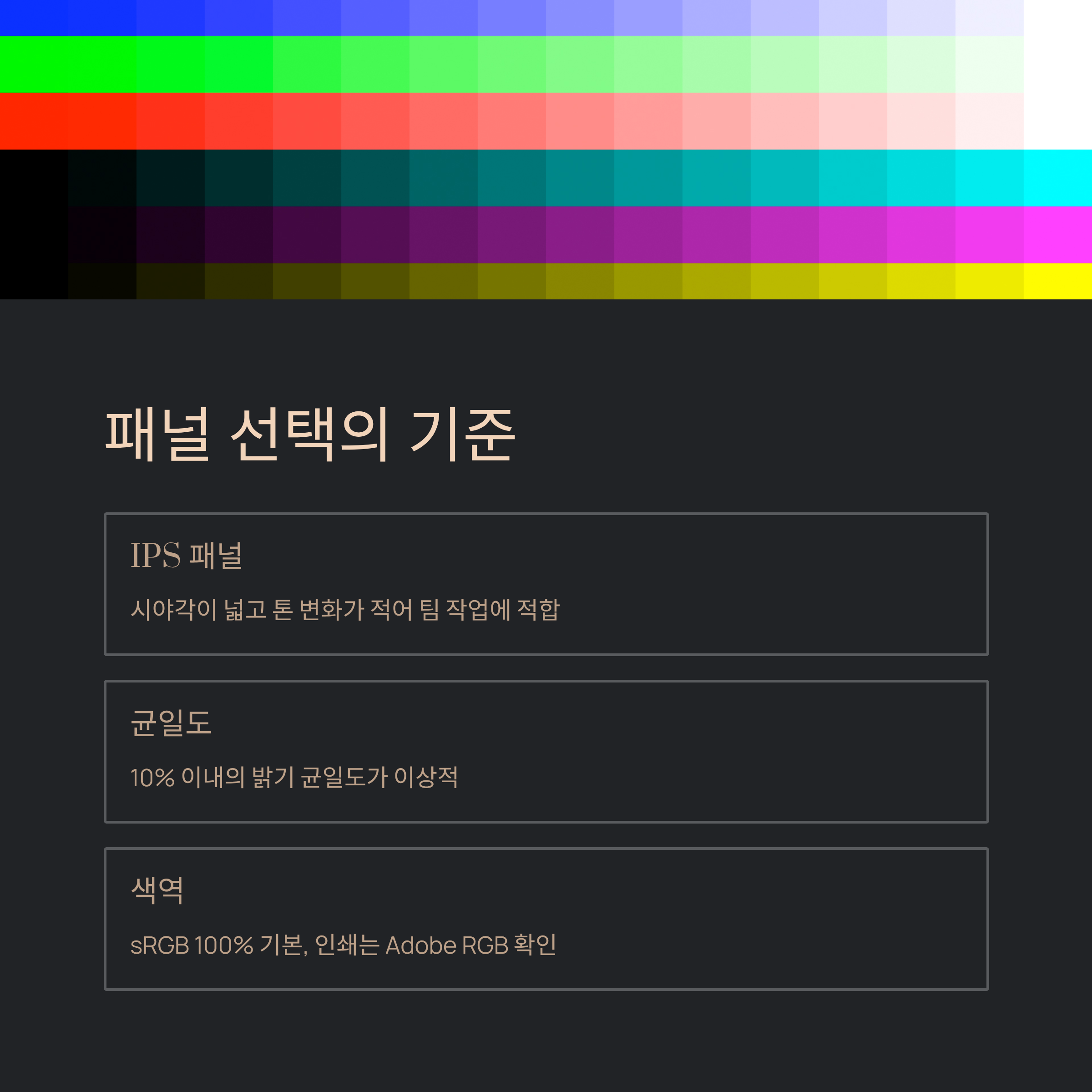 🧭 처음 선택 기준: 패널·균일도·색역을 한 줄로