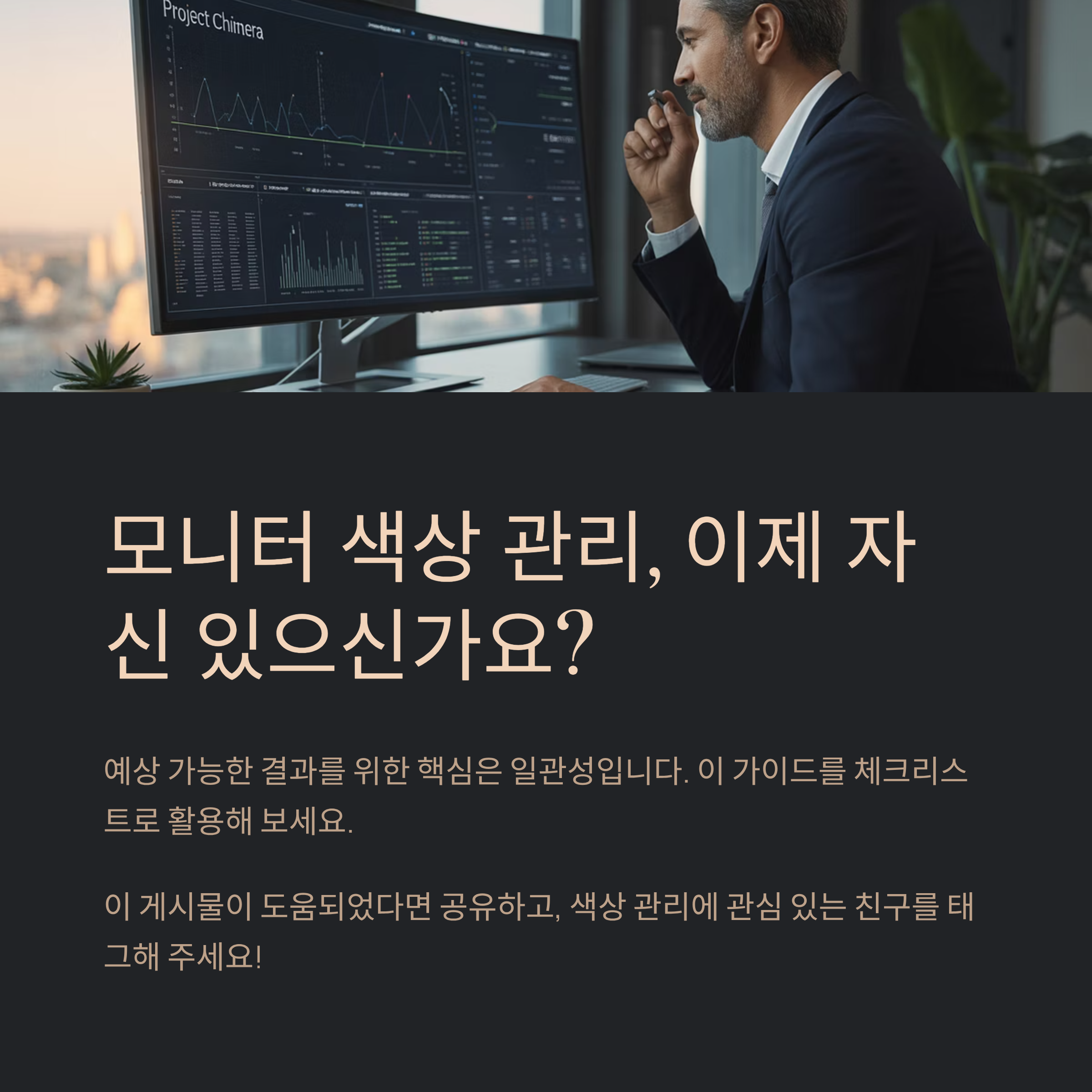 결국 화면 작업의 핵심은 ‘예상 가능한 결과’예요. 눈이 편한 밝기에서, 균일한 패널로, 정해진 루틴에 따라 캘리브레이션을 돌리고, 필요할 때만 HDR을 켜는 단순한 흐름이 불안을 줄여줘요. 오늘 정리한 기준을 체크리스트로 옆에 붙여두세요. 새 프로젝트를 시작할 때 한 줄씩만 확인해도 색이 들쭉날쭉 흔들리는 일이 훨씬 줄어요. 작은 준비가 하루의 리듬을 부드럽게 바꾸고, 그 리듬이 집중 시간을 지켜줘요. 다음 편집에서도 같은 밝기, 같은 톤으로 차분하게 이어가요.